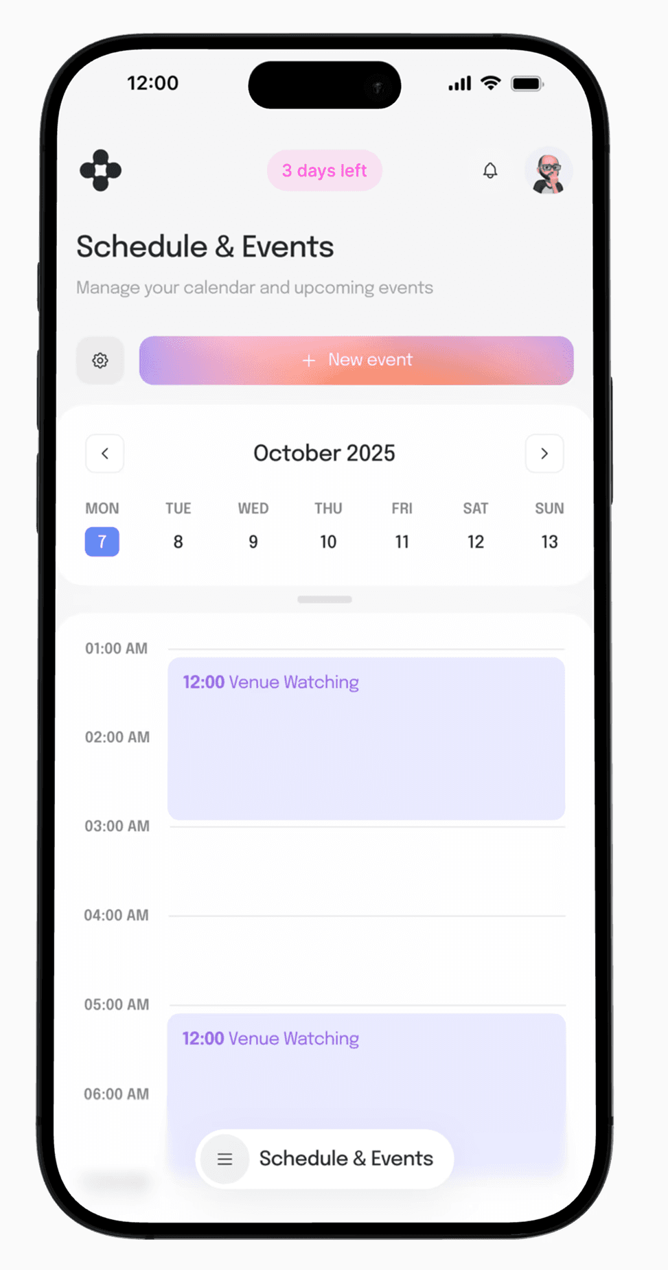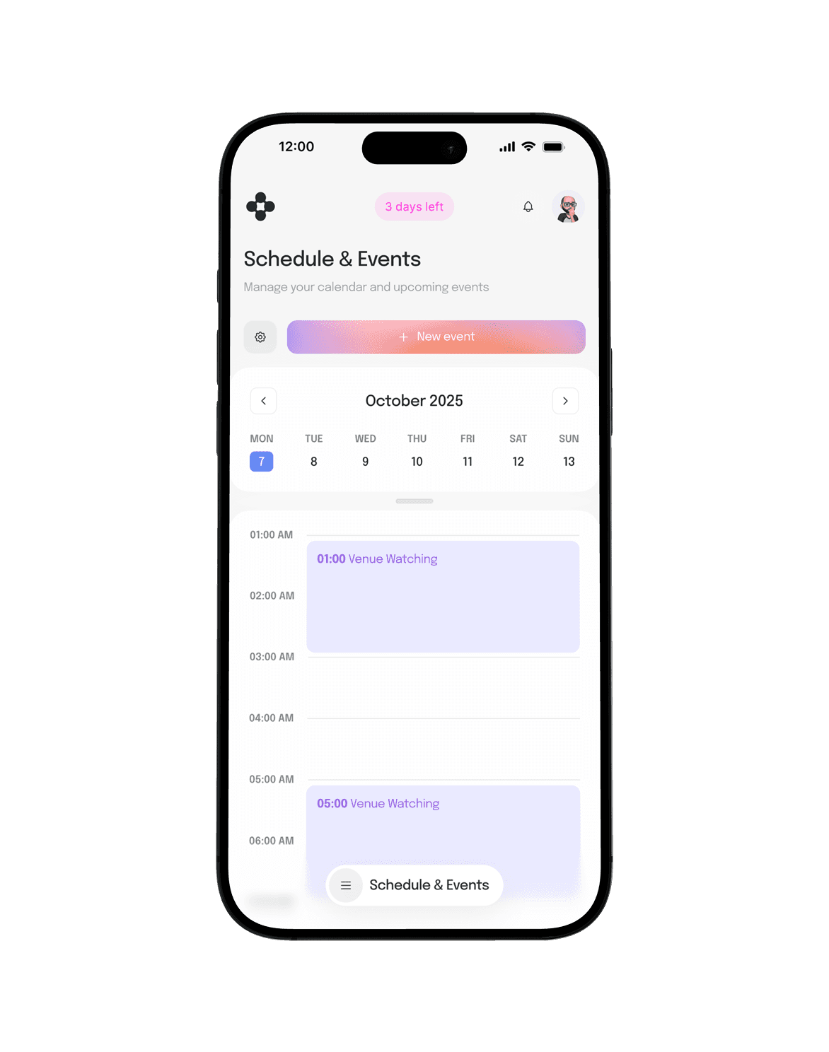 Everything you need to run events in one place. Events, tasks, clients, suppliers, and finances — fully connected in one platform.