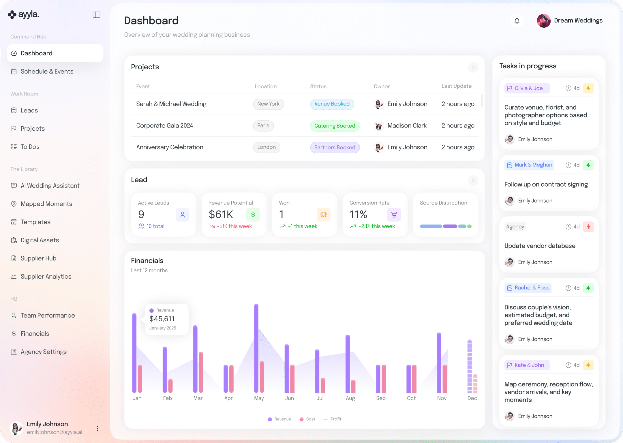 Event planners and planning studios — starting with wedding workflows, built to extend beyond.